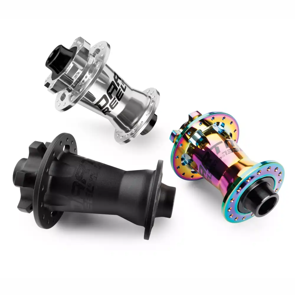 Přední náboj Reel Expert je standardně dodáván s pevnou osou 100x15 mm / 110x20 mm Boost (konusy/redukcemi pro osy 15 mm a 20 mm Boost součástí balení). Není to jen jeden z nejlehčích gravitačních předních nábojů na trhu, ale také jeden z nejlépe vypadajících. Jeho asymetrický design s větší přírubou na pravé straně a výřezy pro úsporu hmotnosti řadí tento náboj na špičku své třídy.