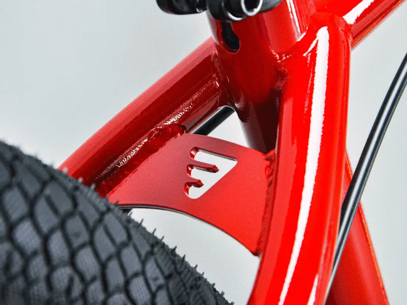 Rám: 24" | 1020 Hi-Ten | Rozměry: (A) TT: 24" / (B) CS: 17.1" / (C) HA: 70° / (D) SA: 71° / (E) BB: 11.3" / (F) SO: 14.3 | gussety výztuž na horních a dolních trubkách | CNC obráběná hlava rámu